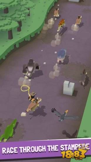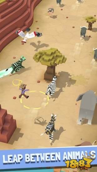 游戏采用的是方块像素风格的画面设计,在游戏中玩家扮演的就是一个典型的西部牛仔,在游戏中角色将骑着动物不断向前奔跑,而一路上除了各种障碍物之外,玩家还会遇到许多动物,而利用手中的绳子玩家可以捕捉这些动物。 玩家可以骑的可不仅仅是马,公牛同样是可以用来骑的,不过公牛可不愿意让人这么骑在身上,所以玩家需要在公牛发怒之前,跳到其他的公牛身上继续骑行。
