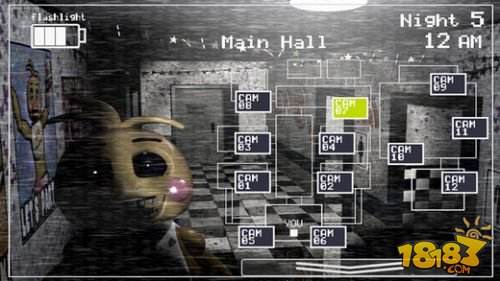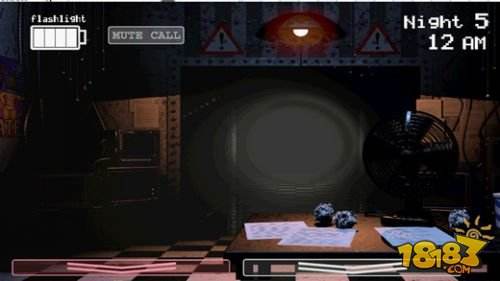 应对方法:如果我们发现弗莱迪出现在办公室正门,我们可以在这个时候戴上面具,他可能呆一会会走;如果不戴面具的话,他会靠近办公桌,这个时候必须赶紧在屏幕灯光闪烁结束之前戴上面具,否则就会被他拖走。