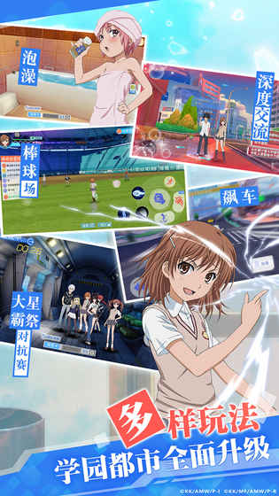 自由开放的学园都市:上条当麻的房间,第一次与炮姐相遇的街头、常盘台中学、车站、铁桥……每一个地点都带来熟悉的气息。在这里,你可以去澡堂泡个澡;完成公共任务获得大量奖励;踢一脚路边的自行车、贩售机……放学后别走,去棒球场来一场真正的对决吧!
