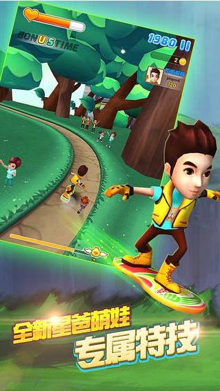 《爸爸去哪儿2》是由湖南卫视爸爸去哪儿节目唯一授权开发的一款跑酷类敏捷游戏。以湖南台的热门娱乐节目为原型,将明星父子的形象制作为卡通人物,然后在充满激情的道路上跑酷。这款正品的手游中加入了所有明星父子的形象,并且还是真人配音哦。游戏真实还原第二季节目内容与特色,不仅仅将邀请的嘉宾加入到游戏内,还新增了旅游胜地武隆天坑、萌宠小黑狗、体育酷跑、“小巨人”神奇药品等等,全3D画面特效让你的旅途比真实版《爸爸去哪儿2》还好玩! 你终于可以在游戏中扮演节目秀中的各位星爸萌宝啦,随时随地畅游在各集节目的场景中,变成巨人冲破一切障碍,急速狂奔欣赏路边风景,还有磁铁、得分翻倍等道具让你畅快游戏。还在等什么?下载游戏快来跟我们一起跑酷吧!