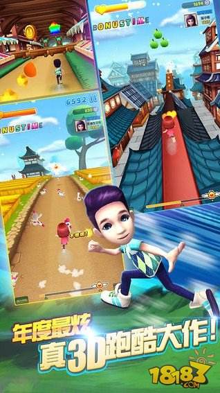 *操作超级简单:滑动屏幕实现跳跃下滑和左右闪躲,躲避障碍,捡取越多的金币和道具就能获得越高的分数