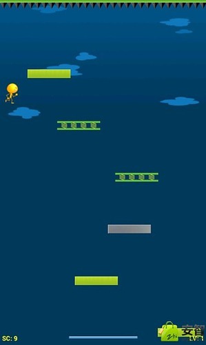 介绍:小人物下跳这是一个很受欢迎的小游戏.这个游戏相当有挑战性,游戏的分数取决于主角和踏板接触的次数和游戏的等级;玩法:1,本款游戏是一款动作类小游戏,使用手机的重力感应器进行操作.2,左右倾斜手机可以控制主角左右移动,倾斜角度越大,主角移动速度越快.3,不要让主角接触到游戏中的尖刺,否则主角将损失部分生命值.当生命值耗完时,游戏将结束.4,不要让主角掉落到屏幕的下方,否则游戏将结束.5,游戏分数取决于主角和踏板接触的次数和游戏的等级