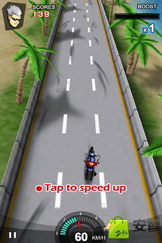 《2013驰骋摩托》是一款竞技的摩托车游戏,在现实中可能你不敢开这么快的速度,但这里可以实现你的理想.令人难以置信的快速度,在交通高峰时间控制你的摩托车!在旅途中享受美丽的景色-城市,桥梁,海上和森林!游戏通过倾斜手机来控制摩托车方向,点击屏幕加快.直观的游戏规则:-倾斜手机来控制摩托车方向;-点击屏幕加快.