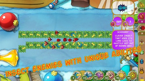 《虫子突击BugRush》是一款Android平台塔防游戏,虫子们正在入侵你的家园,你需要在花园里种植各种植物抵御虫子的入侵,摆放迷宫来延长虫子的停留时间,40个关卡,9种敌人,6个不同的炮塔和升级。