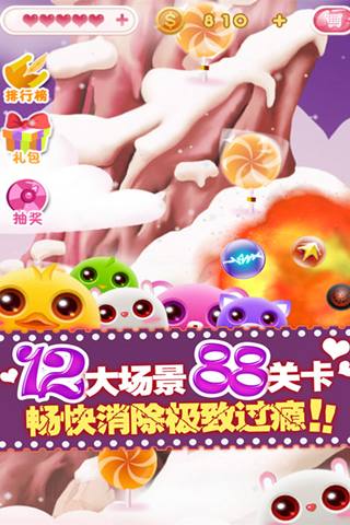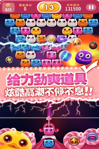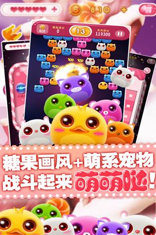 应用简介:最Q萌的宠物主角,融入趣味刺激的剧情和Boss挑战,配以清新甜蜜的糖果画风和炫目击打特效,史上最畅快过瘾的消除体验,就在《Q宠大联盟》~游戏玩法十分简单有趣,连接3个或以上同样的宠物泡泡来消除它们,消除越多得分越高,获得最佳成绩还可赢取丰富奖励哟,消除全部宠物拿到糖果即可开启下一关。游戏共有12大场景88个关卡,每个场景都有不同的Boss守护,它们会根据你的射击做出还击,考验你的智慧