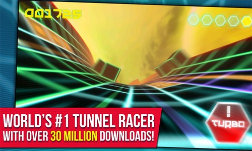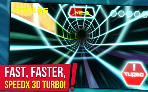 《极速隧道3DSpeedX3D》是一款竞速游戏,游戏画面十分华丽,让人无法自拔,体验绚丽的光影效果,使用重力感应控制左右移动,不断加速来获得生命,速度降为0后一旦碰撞游戏就失败,避开路上的各种障碍即可。而这款‘加速版’版本,增加了turbo加速按钮,使得游戏具有更炫丽效果,超快的速度感。