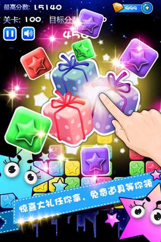 ~消灭星星对战版来了,一起对战吧~◆点一次消灭或点二次随时切换◆本游戏质量优于所有同类游戏◆AppStore下载最多的休闲游戏~Android版本来了~◆在许多国家手机游戏排名第一◆史上最完美的消灭星星◆特色1.无关卡限制自动保存◆2.新道具实用的接关功能◆3.画面和可玩性优于任何一款同类游戏让我们做一个最懂你的游戏世界排行榜跟好友一起挑战最高分吧点击2个或更多颜色的星星进行选择再次点击选择的星星进行消除同色的星星越多,得到的分数越多谨慎选择,冲击最高