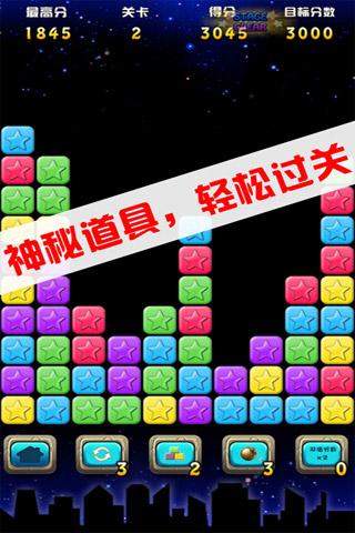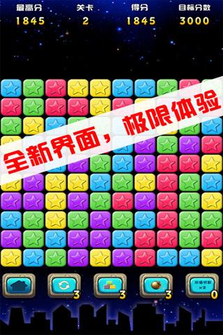 ★?全球最火爆的消除游戏,经过了重新地设计,高清地画面,优质地体验又重新回归到我们的身边:●?5种全新的星星.●?全中文界面支持,全新设计的清新海滩画面.●?OpenGL2.0?急速渲染,超流畅体验.●?舒适地音乐,极致挑战智慧智慧的游戏.●?实时刷新全球排行.★?游戏玩法:●?点击两个或两个以上的同色星星即可消除,单指操作哦.●?没有时间限制尽情思考吧,但每一关有过关分数,达到才能过关哦.●?合理运用各种道具,帮你刷新更高的记录,登上全球高分榜.运用存档关卡,实时保存您的游戏最高关卡。★?小提示:●?同时消除的同色星星越多,获得的分数越高.●?尽量拾取全部星星吧,剩下星星越少你获得的额外奖励将更多.●?首次进入游戏后,游戏会给玩家分配一个昵称.●?游戏结束后可以提交自己的分数.●?每天首次登录游戏,都会获得钻石.★?流量说明●?极少流量消耗.【基本信息】作者:罗顺更新时间:2015-05-08版本:2.0.0系统:Android2.3以上语言:中文【更新内容】错误修复,性能提升