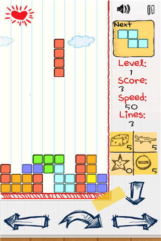 方块拼图手绘版是通过手绘画风界面下的类似俄罗斯方块的游戏,手绘的风格增添了游戏的趣味性,通过挪动和变换出现的方块使其填充矩形空白处,每一行空白填充满即可消除,当方块顶到最顶端时游戏结束,快来挑战下你的眼疾手快吧!