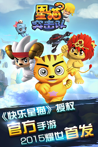 2015正版授权《快乐星猫》新游耀世首发极致颠覆!极度好玩!2015手游惊艳之作《星猫突击队》震撼上线!《星猫突击队》是一款TPS(第三人称视角的射击)类角色扮演游戏,主角(星猫、卷毛、大牌)三人,带着自己的小伙伴(妮妮、大尾、薇薇),受命缉拿逃窜到地球的黑魔王,星猫将和他的伙伴们又将承担起拯救灾难、维护宇宙和平的使命,他将经历一场怎样的完美之路呢?让我们和星猫勇士们一起去战斗吧!