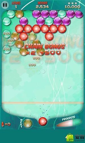泡泡龙动员[1.3.4]一款类似于泡泡龙的小游戏,游戏与原版的泡泡龙相比,增加了不少新的玩意儿,比如炸弹泡泡能够让你一次性消掉很多泡泡;而冲击力泡泡能够拥有很高的速度,一下子就冲到最上面了;此外还有各种泡泡的类型:染色泡泡、繁殖泡泡、漩涡、水雷、完美。游戏中玩家连接三个及以上同颜色的泡泡可以消除这些泡泡,消除所有泡泡,直到打破藏有红心的泡泡算赢。