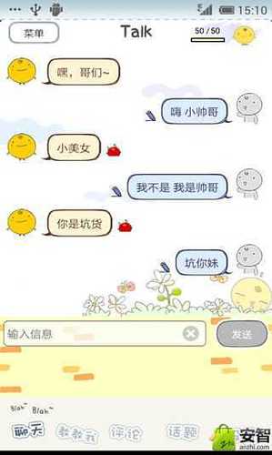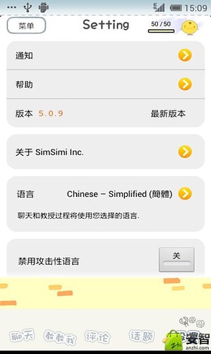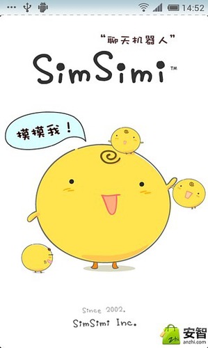 SimSimi是一个可爱的智能聊天机器人,他能和用户进行有趣的对话!该软件的使用方法非常简单,你只要点击屏幕开始对话,SimSimi就会立即向你问好。和其他传统的聊天应用一样,你只要向对话框输入文字你就可以开始对话了。不要对SimSimi的快速反应表示惊讶!他是超级机器人!SimSimi的词汇量会随着你输入的文字而增加!你可以和其他用户一样教SimSimi更多的单词。如果SimSimi没有数据来回答你,那么他就会说“我无法回答你。”然后你就可以选择“Teach”按钮将你的问题和回答都输进去。一旦你教会了SimSimi,他就会立刻回答你(将近三分钟)。快来和史上最可爱的机器人SimSimi对话吧!
