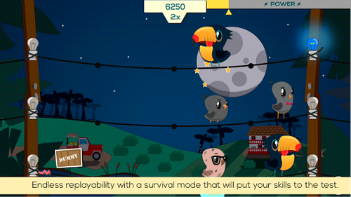 《电路恐慌CircuitPanicFree》是一款益智休闲游戏。游戏考验你的反应能力。你要帮助电线上的鸟儿躲避电击。游戏有多种鸟供你选择,并且有6种不同的模式,每种模式下的剧情也不一样。游戏配乐也是由作曲家MariusMasalar一手操刀的,游戏画面和配乐得当,是非常值得一玩的一款游戏。