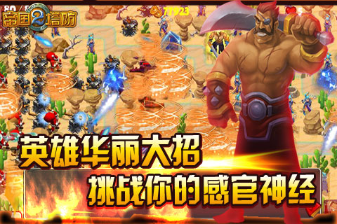 千万玩家的首选,史上最受欢迎的三国题材塔防游戏《帝国塔防2》震撼更新!现在下载即免费赠送4000水晶!◆游戏特色1、赵云、吕布、貂蝉等十六位各怀独门绝技的三国英雄整装待发,配合十八种不同类型的兵种助你一统三国!2、独创的高自由度个性化自定义路线玩法,是诱敌深入,还是迂回周旋,一切由你做主!3、22个三国经典战役关卡一气呵成,单机闯关与竞技场联机模式完美结合,PK对战酣畅淋漓,毫无保留。