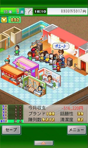 时尚洋品店是开罗公司(Kairosoft)为安卓平台带来的一款经营新作,这次将要带领玩家进军时装零售业,打造自己的服装帝国.嘛...总之就是个经营多层服装大厦的游戏~~除了销售各种精品服装之外,还可以装饰模特、布置展台等,让客人满意才是王道.赚钱后可以增建店面,举办时尚活动也可以招揽顾客.除此之外,商品价格和配置店员以及店内清洁等内容也十分重要.光顾时装店的客人也许会有“明天想去约会但不知道穿什么衣服才好”这样的各种烦恼,帮助他们挑选衣服,解决问题,客人的交流能力也会上升,用自己的建议让他们都充满自信.你对流行时尚是否敏感?有一颗伪娘的心吗?这不单单是一款为女孩子设计的游戏哦,模拟经营最高!今后你就是老板了~