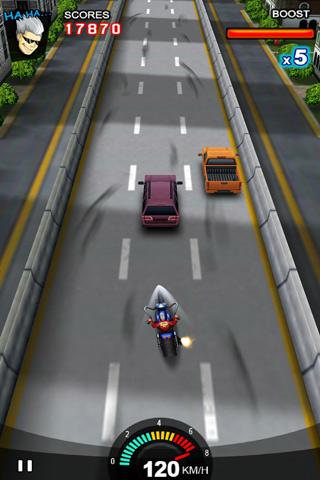 这款RacingMoto竞技摩托的视角比较独特,带来的好处就是操作特别直观,有点站在天桥上的感觉,有点意思.最有趣的和最极端的摩托赛车游戏的Android!非常逼真的3D图形和环境。非常上瘾的,很好玩。多层次,升级,让你玩了好几个小时!点击加速和倾斜来控制你的方向如果你喜欢死亡超高速摩托赛车等游戏,你一定会喜欢这一点。