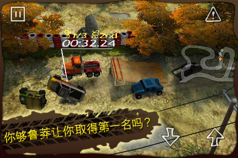 《鲁莽赛车RecklessRacing》最刺激的赛车并不是在赛道上规规矩矩的进行的,而是在普通的公路、沥青路甚至是土石路上狂野狂奔的赛车,才是最令人感到刺激而紧张的。这款由polarbit所推出的《RecklessRacing》,将让玩家体验到在各种不同路面上驾车狂奔的刺激感。普通公路、沥青路和土石路等等,这些路况恶劣的道路,将等着你的光临。千万不要小看这些路面,因为除了路面外,道路积水、淤泥、凹陷坑地、水塘甚至是落崖,都将会成为你争夺第一的障碍。一个过弯失误、一个方向控制出错,就可能让你名次落后或者翻落水中掉入沟壑。当然你也可以让你的对手面临这样的状况,毕竟这是没什么规则可以的狂野竞赛。游戏的音乐有着美式乡村音乐的味道,节奏欢快而富有动感。不过游戏的时候听到最多的,还是各种过弯漂移和刹车打滑的声音,十分有临场感。