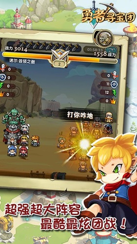 全球首款放置冒险RPG手机游戏《勇者寻宝团》震撼问市!史上最轻松的休闲冒险闯关游戏,躺着收钱,坐等升级!数千位漫画英雄,回味经典动漫,赶快加入欢乐的冒险之旅吧!登陆送beymax!快来把萌萌的大白抱回家吧!===游戏资讯===粉丝团https://www.facebook.com/yzxbthttp://yz.hithere.com客服邮箱xmyz@hithere.com★游戏特点※放置冒险不停歇※挂机冒险,自动砍怪,易于上手,根本停不下来。※英雄升级无需操心,向枯燥的练级说Byebye。※180个关卡,随机触发神秘事件,免费装备送不停。★20个英雄齐上阵,组队破关易如反掌※颠覆传统RPG游戏,单一英雄战斗无助的局面。※雇佣最强英雄,满编20人齐上阵,技能搭配无限组合。※团队战斗,炫酷激萌。★矿洞探险,搜寻奇珍异宝※挑战地下新视野,挖掘优质矿物资源。※宝藏&挖矿,惊喜无限量供应。※“巨魔雕像”等你唤醒。★无限世界,万千英雄等你收集※200+动漫角色跨时空大乱斗。※全明星战斗阵容,技能搭配考验你。※回顾经典动漫人物,收集最强英雄,闯关永不停息。★超有爱弹幕聊天,神吐槽精彩无限※挂机升级,畅聊破关秘籍。※无朋友不游戏,邀Facebook好友一起开始探险旅行!