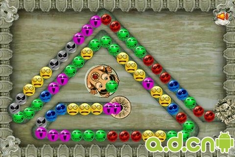 有创意的祖玛游戏,古代庙宇,丛林深处隐藏着庙宇陷阱和爆炸的诡计,也要等你自己去发现他们的府库。球从火魔法石蛙的嘴里发射,使链到达黄金的头盖骨之前三个或三个以上的相同链在一起消失。探索所有的庙宇,但要快速的思考。经典祖玛游戏,分享支持!提交你的得分跟其他世界各地用户分享! 【游戏玩法】 点击屏幕插入球,使三个或三个以上相同颜色一起