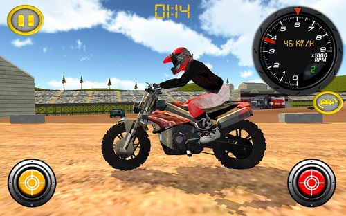 《越野摩托车拉力赛(DirtBikeMotocrossRally)》是一款简单有趣的摩托车越野游戏,跨上你的坐骑在泥泞的赛道上疾驰,通过重力感应来改变方向,右边的按钮为加速,左边为刹车,一旦中途失误就Gameover了。