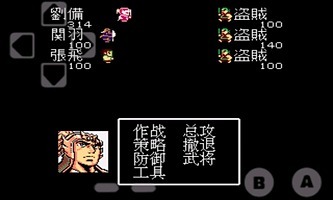 吞食天地孔明传的简介... ★游戏简介: 在本作中玩家扮演刘备,从第一章“黄巾之乱”开始,一直到最后窜改历史一统天下,总共分为八章.游戏内容比较充实,遇敌率也不高,不过战斗过程比较漫长.战斗过程除了普通攻击外还有总攻击和策略选项,体现了一定的战术性.游戏中登场的三国人物总共有200多位,武将带兵的数量取代了传统RPG的HP值,军师谋略值替代了用来施放法术的“魔”. ★游戏技巧: 在游戏中,除了在三面包围的地方可以找到宝物外,在城角,陆地的边角,森林所夹的道口等两面被围的地方也可以找到宝物. ★软件特点: 1.直接下载安装就可以游戏,不需要其他的任何设置! 2.本游戏除了支持触摸屏操作以外,还支持实体按键~,有实体键的童鞋可以玩得更爽~ 3.此外按menu键可以随时保存,随时读取~,任意S/L!