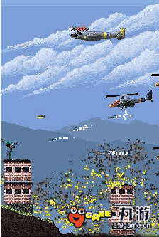 玩家单枪匹马对抗敌人一浪接一浪的轰炸,避过油汽弹、空降部队、武装直升机发射火箭和战术核武的进攻,非常简单却能令人爱不释手,适合在候车时消磨时间.随着难道一级级提高,敌人展开更大规模的空袭时,你就会感受到有心杀贼,无力回天的凄怆和悲壮.