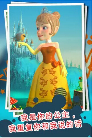 所有你想要的魔法,你可在会说话的公主中全都找到,感受真正公主的感觉.会说话的公主会对你的触屏反应并重复你说的话,此外还可以做所有下面这些:和鸟唱歌,和花跳舞,当公主感受,给你的公主穿衣,给你的公主涂颜色并录制录像或者通过电子邮件寄给朋友们或通过你的社交网络分享!会说话的公主有所有你孩子想要的,动听的旋律,美极了的设计及趣味,所有你想给你孩子的,互动,内容质量及特别为孩子而设计的功能.会说话的公主可以:你和她说话她将重复你说的话.发现她所有的动作.和鸟一起唱歌玩得开心.在花丛中歌唱.给你的公主穿衣.