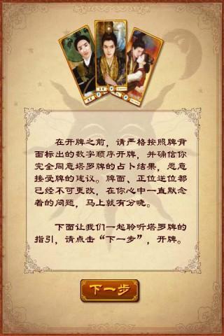 神秘的塔罗牌占卜终现江湖!全新牌面,全新体验,爱情、事业,坚定与迷茫,塔罗牌都将带你进入神秘惊奇的占卜之旅。。。游戏详细介绍:1.特别精选的18个爱情和事业牌阵。2.传统的78张数字牌,配以精美的图案,每张都拥有其独特的含义。3.自我探索及发展的具有生命智慧的娱乐工具。安卓星座塔罗牌占卜游戏背景:“塔罗”一词,是取自埃及语言的TAR(道)和RO(王)两词,含有王道的意思。因此,“塔罗”本身也就是指身为王者,他应该具备的正确决断力,这也真是塔罗预测方式的起源。塔罗牌是由22张大阿卡娜和56张小阿卡娜(数字牌)组成的,共78张。大阿卡娜代表的是圣、天界、抽象而伟大的观念,小阿卡娜代表的则是俗、凡人、芸芸众生、具体而实际的日常处境、心境。主牌。22张,分别是:0号愚人牌、1号魔法师、2号女祭司、3号女皇、4号皇帝、5号教皇、6号恋人、7号战车、8号力量、9号隐士、10号命运之轮、11号正义、12号倒吊人、13号死神、14号节制...
