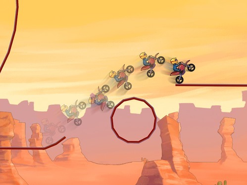 摩托车表演赛(BikeRace)是一款画面简单,休闲好玩的特技小游戏,玩家在游戏中需要驾驶摩托车,在令人惊叹的赛道上做各种表演,这是常人所不能及的魔力表演.在空中翻滚,滞空,翻越,跨到摩托所能达到的最高点.游戏操作简单,只需点击屏幕加速,在滞空时倾斜设备来保证摩托车的平衡即可.