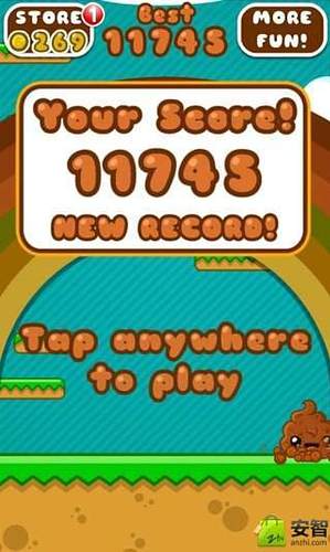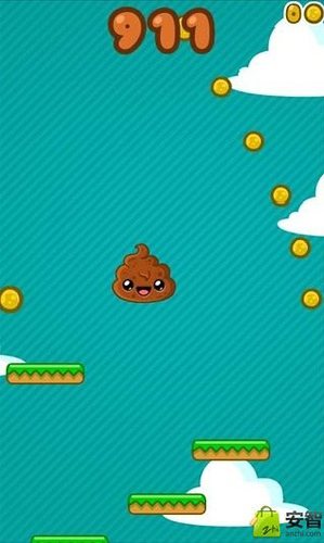 一款以可爱大便形象为主题的跳跃类游戏,游戏的方法有点像是DoodleJump涂鸦跳和MegaJump的结合体,在色彩方面比较卡通,配色也算是不错.游戏目标便是操控便便不停的向上攀爬,在操作方面,也是当然的:重力操控,晃动手机来控制便便的左右移动,首次游戏会需要一点时间去习惯便便的跳跃高度,操控感应灵敏度还不错.在HappyPooJump不停向上的路上,板面是一格一格跳上去的,到了完美区域则可以获得完美向上飞.HappyPooJump便便跳游戏中有苹果道具,可以让便便飞一段时间,当然它也需要避开蜜蜂.如果你已经被令郎满目的跳游戏给搞晕了头,或许这款又能蹦又能飞的HappyPooJump可以让你缓口气.