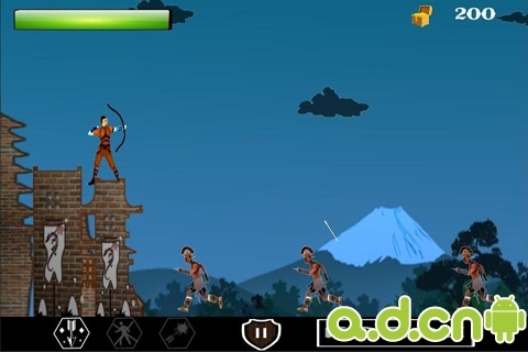 SamuraiBowman(武士鲍曼)是一款新的塔防游戏,类似屠龙猎手。在一座城堡上,你需要不断的射箭来阻止敌人对你的城堡的进攻。在很久很久的亚特兰蒂斯王国,一场危机已经降临了,这个王国的敌手开始攻击王国的首都,虽然首都的军民进行了顽强的抵抗,但是最后仍然被都杀死了,现在,整个首都里只剩下你一个人了。你必须要坚守这座城市,王国其他地方的军队正在向这边赶过来,敌人有足够的武器和士兵在接下来的30天内全力攻打这座城市,你必须要坚守30天以等待援军的到来。游戏特色:-30场互动的战役;-7种不同类型的敌人;-三种不同类型的箭;-还不错的2D图形界面;-激昂的游戏配乐。