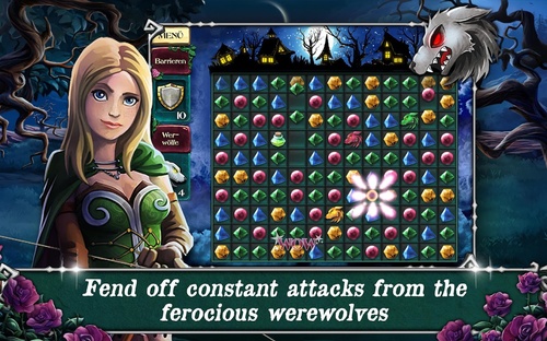 《宝石传奇:血月修改版JewelLegends-Bloodmoon》一款三消类休闲游戏。在沃尔夫斯巴赫这个宁静的村庄中,人们曾经过著安定繁荣的生活,直到邪恶的狼人用他们凶残的进攻彻底破坏了这裡。只有一支传奇般的狩猎者队伍才有这样的勇气与力量对抗这些怪兽。率领狩猎者保护村民,同时抵抗这些怪兽不断发起的进攻。