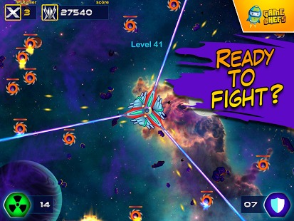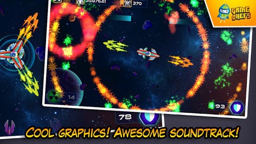 银河防御战HD修改版(GalaxyDefenseForceHD)是GameChefs开发的一款生存类的射击游戏。在游戏中,玩家只需一边操控战机击落敌人,一边尽可能的生存下来。游戏玩法非常简单,每次挑战都会有三个战机背靠背黏在一起,你要做的就是通过圆周式的划屏来对进犯的敌人发起攻击