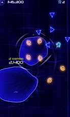 精灵空间采用了经典的炫光游戏界面,主角是一个蓝色精灵,玩法非常简单,拖动蓝色精灵快速移动,以使其后面的尾迹能够形成一个封闭的圆形空间,这样生成一个时空之门,将游戏界面中的那些不断运动者的物体统统吸收进去。
