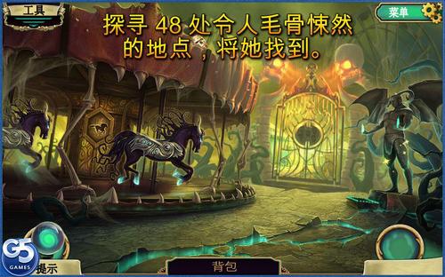 《黑暗奥秘:嘉年华DarkArcana:theCarnival》在这个令人心跳加速的历险中,面对面挑战恶魔!小镇上正在举办神秘的嘉年华会,但神秘事件也随之发生,令居民人心惶惶。请你在一切都还来得及之前,找到离奇失踪的年轻女子!你将在两个世界中展开调查:一个是你当前居住的世界;另一个则是通过嘉年华会镜厅进入的镜后世界。很多年前,嘉年华会上发生了一起意外事故。一位表演者在演出-时不慎失手,杀死了他的未婚妻。你将在此得知这位表演者的悲惨故事,了解一段古老的历史,发现“邪恶之主”的秘密。探索华丽而恐怖的任务地点,阻止“邪恶之主”再次犯下滔天罪行!你可在游戏中通过程序内购买功能解锁额外奖励。游戏特色:48个令人毛骨悚然的神秘任务地点;18个供你搜索的隐藏物品场景;28个让你绞尽脑汁的迷你游戏;21个激动人心的成就供你收集;三种难度模式,悬念迭起;附加章节、攻略指南和周边内容。