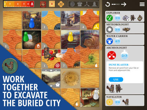 禁制的荒漠(ForbiddenDesert)是一款由经典桌游改编手游,逃离生命禁区。在游戏中,玩家将会来到一片荒漠之中,体验到大自然的无情。玩家要在游戏中要对一个失落的城市进行挖掘,通过对资源的分配和布置策略,玩家可以在城市中寻找到各种零件,借此来制作出可以让自己逃离出生天的飞船。游戏最多支持5名本地玩家共同游戏,还等什么,即刻下载体验吧!