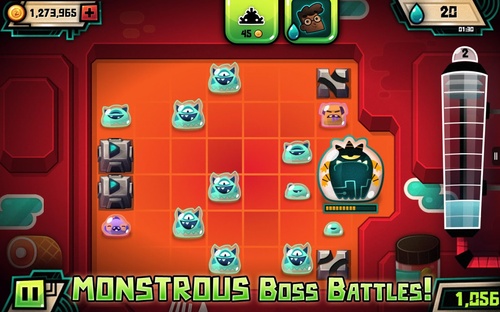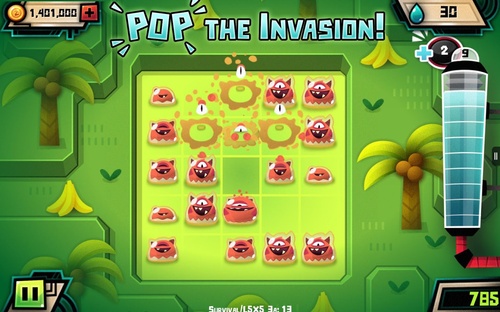 《哥布林Globlins》是一款美国卡通频道CartoonNetwork推出的趣味解谜游戏。玩家可以在屏幕上用手指戳碎一个个色彩鲜艳的哥布林,从而制造一系列连锁反应。整个游戏的操控都可以通过点击完成。当你戳碎一个哥布林之后,它就会向周围上下左右四个方向喷出四个小水滴。小水滴在碰到其它哥布林后使其长大,直到爆炸开来。