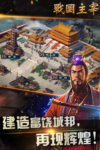 《战国主宰》是一款以战国历史题材为主基调虚构而出的策略战争类游戏,游戏中群雄纷起,各路诸侯野心勃勃,你可以是调遣千兵万马的枭雄,也可以是拥有多座城池、野心勃勃的诸侯,众多名将、谋士等候你的差遣,强大的联盟是你坚强的后援,军力调配唯你掌控,带您进入最真实的国战氛围,真切体验到运筹帷幄决战千里的快感。史诗级的场景画面、华丽的战斗技能和极具策略性的征战关卡,大型多人在线战争让您欲罢不能。