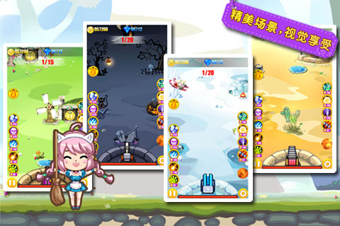 《进击吧萝莉》是一款创意十足,制作精良的射击+塔防游戏。4大主题场景,从绿野仙踪到沙漠风暴,游遍童话世界,面对大群来自怪蜀黍军团让人忍俊不禁的二货敌人。玩家可以通过完美新的小萝莉来获得更多的武器,机关枪可以快速发射大量子弹冲击敌人、火箭炮放出的导弹范围攻击,电浆炮射出后会自动跳跃伤害更多敌人、粒子光束可以射穿一条直线上所有的敌人,而清洁器可以对玩家指向的位置做到精确打击,有针对性的使用这些新奇武器可以助你轻松把敌人轰杀至渣。在战斗中还可以制造陷阱来对付敌人,黏黏陷阱可以让经过的敌人速度变慢、火焰陷阱可以让敌人烧起来、冰冻陷阱能让敌人变成不能动大冰块、诅咒陷阱会让敌人受到的伤害加倍,还有可怕的泡泡陷阱,被泡泡包裹住的敌人会变成人肉炸弹,一旦受到攻击就会原地爆炸!巧妙搭配这些陷阱阻挡可以让敌人寸步难行!游戏中还有多样的技能树系统,玩家可以自动选择强化武器,陷阱或是自己的城堡,创出最有个性的玩法。还在等什么你?快来保卫你可爱的小萝莉吧!