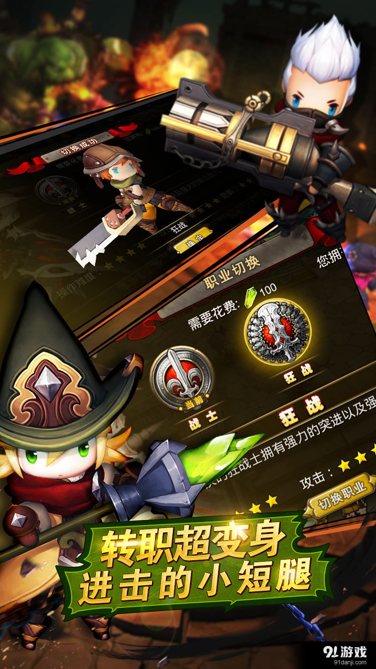 新增功能 1.转职:4个职业各新增一项平行转职职业(狂战、战牧、巫师、重炮手) 2.跨服战:新增3V3跨服战功能,高玩间的PVP将更加激烈 3.资源找回:新增资源找回,没时间玩游戏,可以第二天消耗一定费用把前一天没有获得资源找回 4.彩虹客服:新增彩虹客服功能,平时疑难杂症可以随时call 5.推荐人机制:新增玩家推荐,推荐好友来玩可以获得丰厚游戏奖励 6.竞技场扫荡:当角色等级≥目标等级15级以上时,竞技场可直接扫荡获胜
