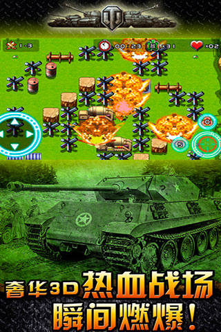 2014年史诗级热血战争大作,全新经典的坦克大战,一样精准完美的操作,不一样的全新绚丽动感游戏场景,更多关卡以及巨型BOSS等带你的讨伐,我们致力将流畅的操作体验,华丽的战斗画面呈现在您的面前,点燃您多年来积压的热血与激情让您乐在其中挑战自我。