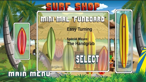 《卡胡纳冲浪KahunaSurfer》是一款冲浪游戏。达克斯住在一个小岛上面,他很喜欢冲浪,然后每天都会拿起滑板去海滨挑战自己的极限。帮助达克斯去提高冲浪的技巧,展现其出色的冲浪表演吧。点击A键先爬到海浪附近,然后点击B键即可乘着海浪滑行,左右移动虚拟摇杆,做出各种高难度动作吧。完整版完美了两个特殊的冲浪板。