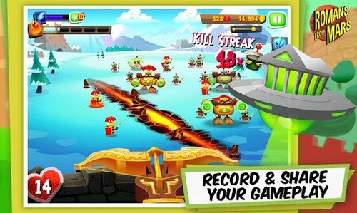 《小兵战神RomansfromMars》是一款无尽的城堡塔防游戏,玩家在游戏中将抵御一波又一波火星人对地球的进攻。本作融入了罗马腊神话的一些设定,由于战神被主神朱庇特驱逐出地球,送到了火星。为了复仇,战神对火星的居民洗脑,并带着他们反攻地球,意图毁掉朱庇特。这些火星人可不是弱兵,他们像潮水一般涌来。而玩家扮演一个身份卑微,操纵弓弩的罗马士兵,必须守住防线,为朱庇特而战。在游戏过程中,玩家还可以召唤五行力量,使出闪电、冰封、烈火等技能,场面相当有看头。