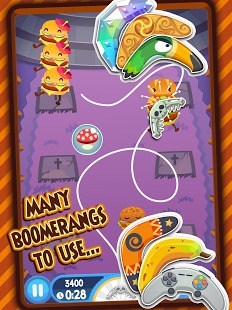 《汉堡大逃亡(Burgerang)》是一款非常有趣的休闲游戏。本来你带了一堆汉堡出外野餐,可是汉堡们却发生了叛乱,纷纷想从你的餐布上逃脱。不能放过这些美味的汉堡,拿起你的回旋镖,划出回旋镖的路线,把所有不听话的汉堡击落吧。