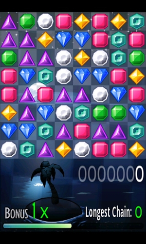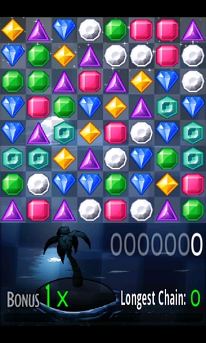 这是一款经典的消除类益智游戏,画面炫丽,玩法多样,音效也很出色.这款游戏的玩法是,将相邻的两个钻石交换位置,横向或纵向三个相同颜色的钻石就可以消除掉,消除四个钻石可获得一枚普通的炸弹(它可以炸掉周围的所有钻石),消除五个钻石可获得一枚超级炸弹(它可以炸掉所有相同的钻石).