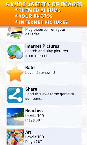 Yo拼图是一款类似于现实拼图的游戏,可以锻炼您各方面的能力,让你变的更聪明,非常适合全家老小玩。 该游戏目前有六种游戏方式,3种游戏模式,40多拼图形状,非常适合消磨时间。游戏一共有20个关卡,每一关都会变换不同的拼图形状和样式,还会随着关卡增加拼图块数。玩腻了自带的关卡,还可以在线玩网络图册,图册有八十个以上。