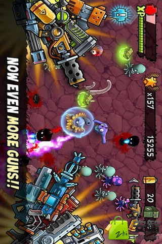 怪兽射击(MonsterShooter)这款游戏经过不断的改进和完善,完全能够满足您的期待!我们采用了双摇杆射击模式并对其进行了优化,全力为您打造最精彩的游戏:怪物射手,全新的双摇杆震撼体验! 免费下载这款游戏,并在积分排名和升级系统中证明你的实力.挑战三个不同星球的多重关卡,享受免费的精彩游戏! 获得完美的视听享受! 前所未有的逼真手绘2D画面,以可爱的游戏造型风格展现超暴力的场面.怪物射手是一款具有完美视觉体验和独特画风的游戏,内置多种敌人,武器和效果,在配置较低的设备上也能够流畅运行. 威力强大的武器和装备! 如果谁的猫咪被外星人偷走了,千万不要小瞧他.作为DumDum,你可以使用霰弹枪,电浆枪和火箭筒轰掉你的敌人,再加上几个手榴弹,让战斗变得更有趣...如果敌人仍然源源不断,就用核武器搞定它们!逼真的音效和视觉冲击会让你既紧张又兴奋! 你会变得越来越棒...
