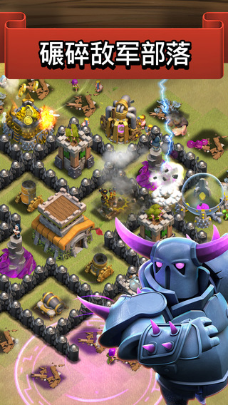 2、使用全新兵种进行对战,包括狂暴野蛮人、隐秘弓箭手、巨人拳击手、炸弹兵、加农炮战车以及新英雄——战争机器。