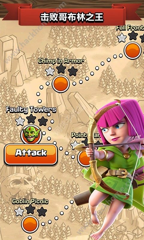 2、使用全新兵种进行对战,包括狂暴野蛮人、隐秘弓箭手、巨人拳击手、炸弹兵、加农炮战车以及新英雄——战争机器。