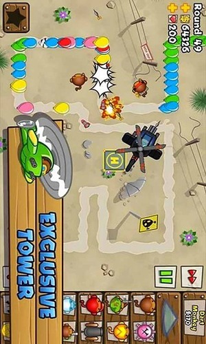《气球塔防5BloonsTD5》是一款塔防游戏,最流行的塔防游戏又回来了!建造合适的炮塔,选择你喜欢的升级,雇佣新的特工,消灭每一个敌人!新的炮塔和特工,享受华丽的铁托,原创的音效和特殊任务,全新的炮塔升级方式和从未见过的猴子实验室来升级你的炮塔,游戏会让你花费好几个小时,挑战其他玩家!